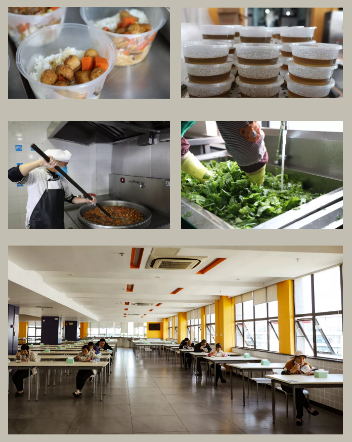 细心的工作人员提前制作大批办公遮挡板,,,,为员工安心办公设立一道安全屏障,,,隔离病毒却不能隔离同事情谊,,,干净整洁的办公室比往日安静许多,,,响起的是敲击键盘的哒哒声,,,,少了往日亲切交谈、、、、你来我往的沟通——疫情背景下,,,话虽少但心却更近了。。。 复工第三关:用餐防护 食堂工作人员自己全面做好防控措施的同时,,,严把原材料关,,,保证饭菜制作全过程安全、、、卫生。。。午餐采取各楼层配餐方式,,,谢绝外部人员进入用餐、、、杜绝外卖送餐。。。在餐厅用餐者需二次量体温,,隔位入座用餐。。。 防控在前,,,,安全复产