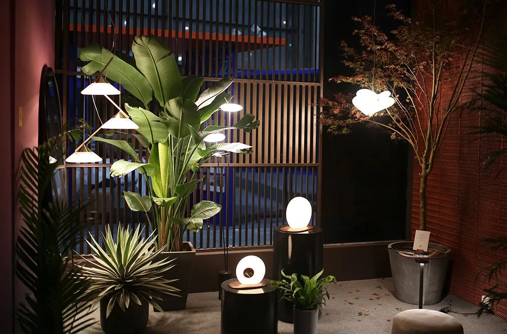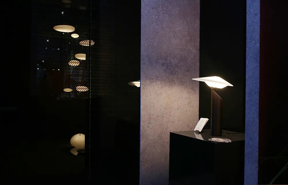 获奖的灯具们是现场的点睛之笔。。。展馆入门右手边,,,,是曾拿下2019年度法国Muuuz国际设计大奖的方寸壁灯。。。。通过光在不同形态上的表达,,,形成虚实结合的「墙」,,,,是打卡出片的好点位。。。。
